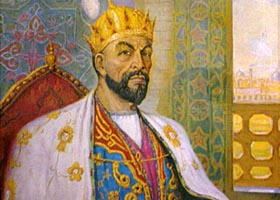 Всю свою жизнь Тимур посвятил завоеванию и укреплению самой обширной державы мира. С изощренным коварством породнился он с кланом убитого им эмира, взяв в гарем четырех его жен. Через Мульт-ханым, дочь монгольского хана, стал своим в стане потомков Чингисхана, что принесло ему скромный титул «гурагон» - зять. Однако и такой титул позволял править, ни в чем себя не стесняя. Любые средства шли в ход для укрепления власти. В окрестностях Кеша царственный лицедей посетил шейха-подвижника Ходжу Ильхара и опустился перед ним на колени, как простой паломник. Когда святой возложил руки на его плечи, Тимуру показалось, что «небо упало на землю» - так, во всяком случае, поведал он окружающим.