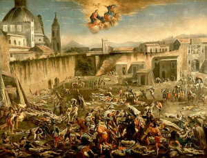 В середине 14 века мир поразила эпидемия "черной смерти" - бубонной чумы, которая уничтожила примерно треть населения Азии и четверть или половину (различные историки дают различные оценки) населения Европы (в 1984 году была опубликована книга британского биолога Грэма Твигга, a "Черная Смерть", в которой доказывалось, что это была не чума, а какое-то другое заболевание, напоминающее современную лихорадку Эбола - научная дискуссия на эту тему продолжается до сих пор). Эпидемия вызвала ряд известных восстаний - Уотта Тайлера в Великобритании, Жакерию - во Франции, восстания горожан во Флоренции и т.д. Общее число жертв оценивается в 130-140 млн. человек.