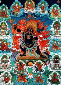 Истоки символизма ваджры нужно искать в Древней Индии. Согласно мифам, божественный мастер-кузнец Тваштар выковал ее для громовержца Индры. Это грозное оружие, «громовое копье» (или секира), схожее с молниями Зевса, имело форму диска со ста углами и тысячью зубцами. Именно оно помогло Индре одержать победу в решающем космическом сражении — схватке с Вритрой («Преграда»), демоном, препятствующим пробуждению жизни и движению небесных вод.