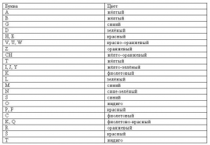 Для большей наглядности в выведении сигиллы или в ритуальных целях мы можем задействовать также цветовые соответствия отдельных букв (рис. 9)