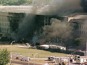 Затем самолеты внезапно меняют курс. Два лайнера атакуют Всемирный торговый центр — так называемые башни-близнецы; один таранит здание Пентагона, еще один падает на землю под Питсбургом.